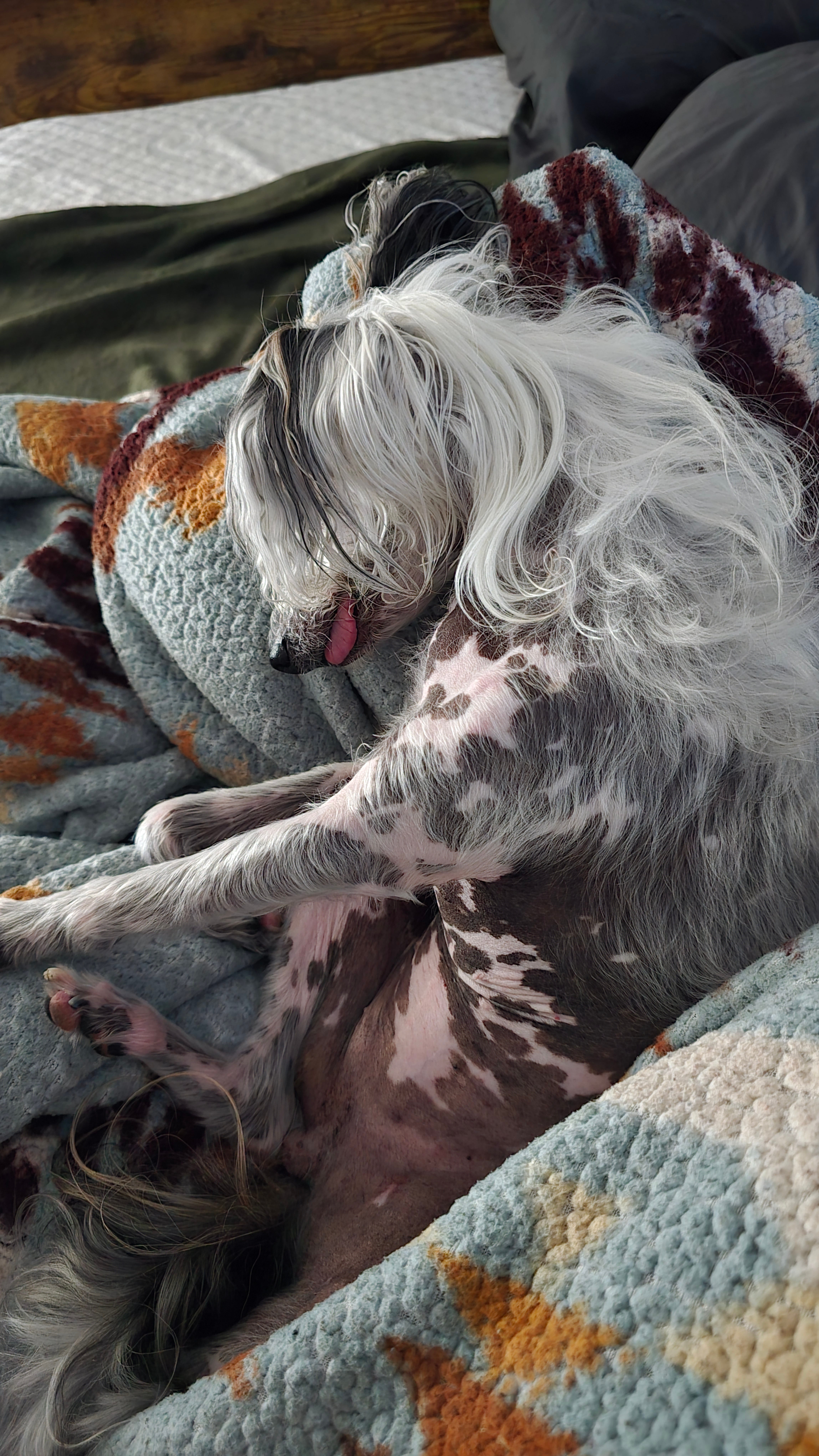 Dora slept on my lap the whole car ride home. That's true happiness. Now she mean mugs me from the foot of the bed because full-belly-version of her is ready for a walk.