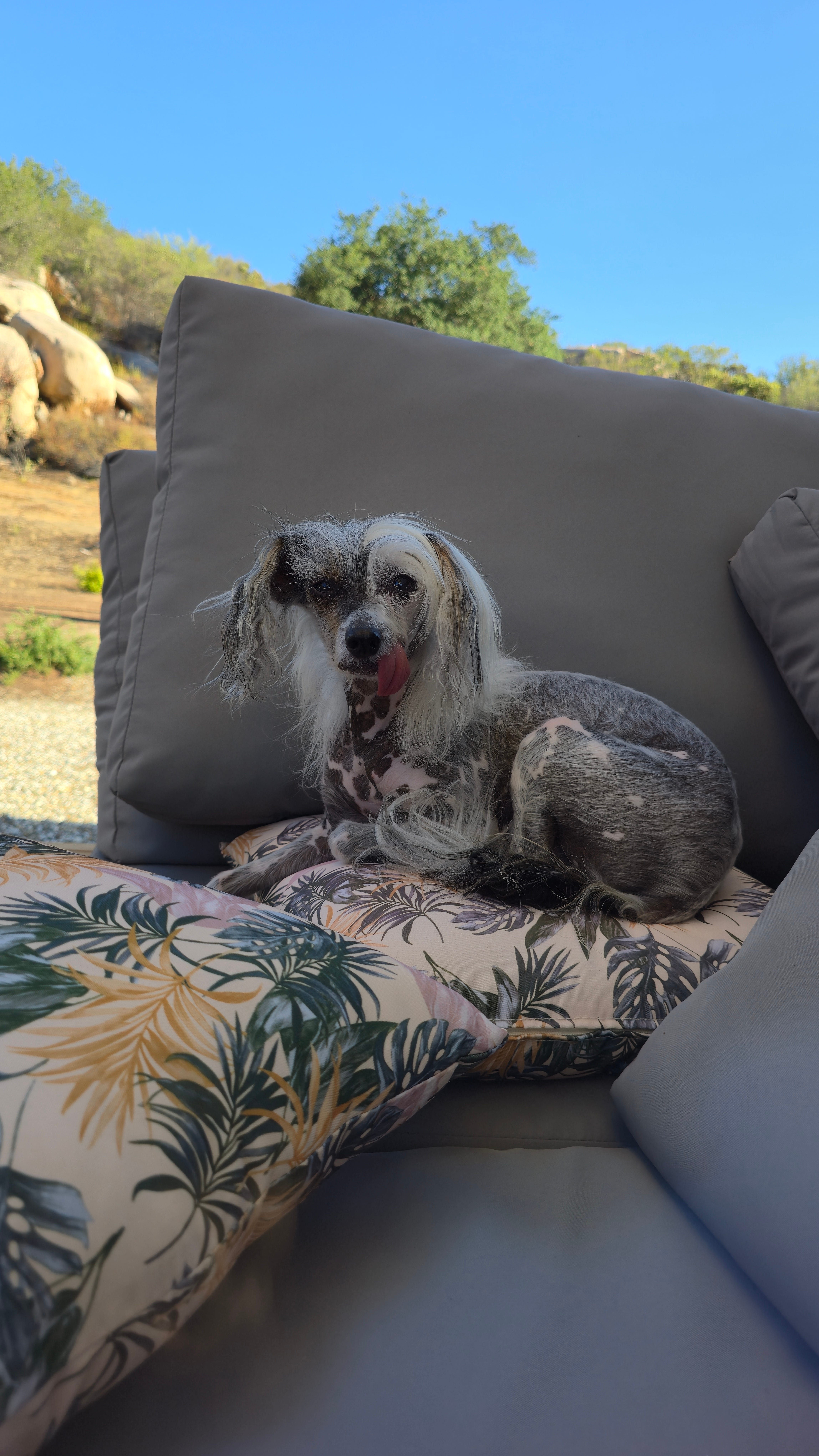 My arm won't stop itching. Dora's trying to eat bees. The flies are coming, maybe it's the heavy breeze.