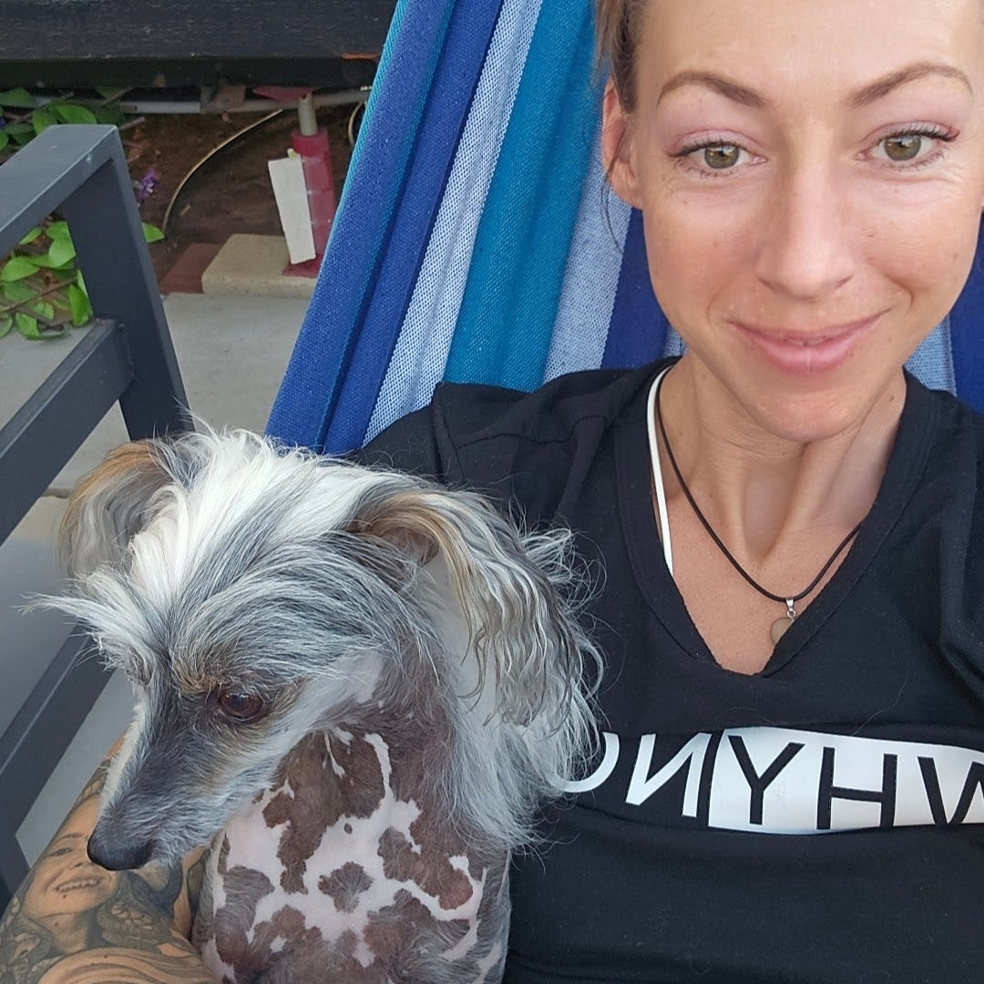 Dora got a shave and a haircut last night, fresh shower. Must have eaten something off the ground on our evening walk, barfed up something looking like chili on my arm this morning.